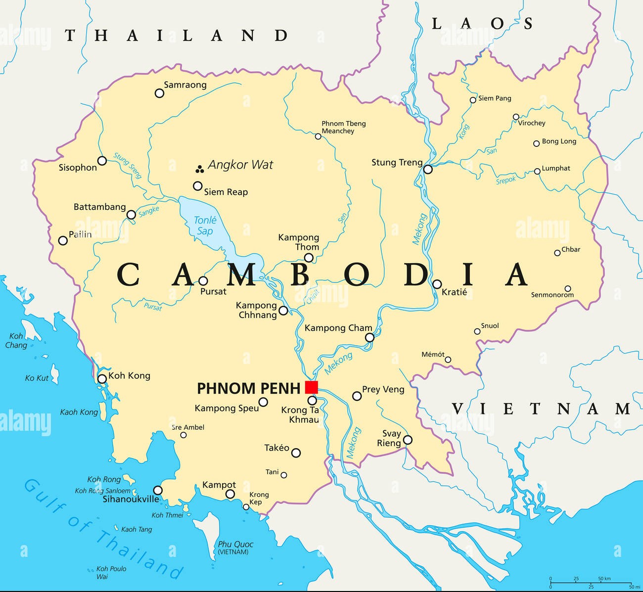 Le Cambodge, officiellement le Royaume du Cambodge, est un pays d’Asie du Sud-Est d’environ 17 millions d’habitants, dont la capitale est Phnom Penh. Bordé par la Thaïlande, le Laos, le Vietnam et le golfe de Thaïlande, il se caractérise par de vastes plaines fertiles favorables à l’agriculture. Le Mékong et le lac Tonlé Sap jouent un rôle essentiel dans la vie économique et écologique du pays. Le climat tropical alterne entre une saison des pluies verdoyante et une saison sèche propice aux découvertes.